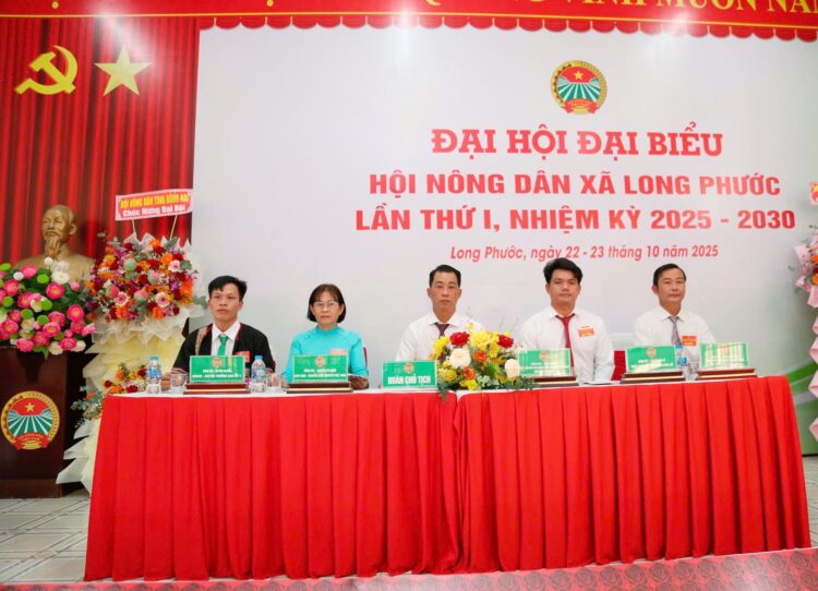 (NCPLĐTO) – Ngày 23/10/2025, hoà trong không khí thi đua sôi nổi của toàn tỉnh Đồng Nai hướng về các ngày lễ lớn của đất nước, Hội Nông dân xã Long Phước đã tổ chức Đại hội đại biểu Hội Nông dân xã Long Phước (tỉnh Đồng Nai) lần thứ I, nhiệm kỳ 2025–2030. Tham dự Đại hội có Đ/c Nguyễn Huy Hoàng – Ủy viên Ban Thường vụ Hội Nông dân tỉnh, Phó Ban Công tác Hội Nông dân tỉnh; Đ/c Dương Thị Mỹ Châu – Bí thư Đảng ủy, Chủ tịch HĐND xã; Đ/c Dương Thúc Minh – Phó Bí thư Thường trực Đảng ủy xã; Đ/c Trần Văn Thân – Phó Bí thư Đảng ủy, Chủ tịch UBND xã; Đ/c Đỗ Chánh Huy – Ủy viên Ban Thường vụ Đảng ủy, Chủ tịch Ủy ban MTTQVN xã; cùng lãnh đạo Đảng ủy – HĐND – UBND – Ủy ban MTTQ xã Long Phước, 95/95 đại biểu chính thức đại diện cho 1.255 hội viên Hội Nông dân tiêu biểu đến từ các chi hội trên toàn xã Long Phước.