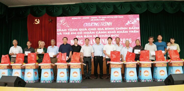 Cụ thể, sáng ngày 10/02/2026, Hiệp hội AVRCIPL đã phối hợp với Đảng uỷ, UBND, UBMT TQVN xã Châu Đức (TP.HCM) tổ chức chương trình “Trao tặng quà cho các hộ gia đình có honaf cảnh khó khăn, gia đình chính sách” mừng Xuân Bính Ngọ 2026. Về phía địa phương có ông Phan Ngọc Tuấn – Chủ tịch UBND xã; bà Hồ Minh Hoà – Chủ tịch UBMT TQVN xã Châu Đức; cùng các ban ngành, đoàn thể trong xã. Về phía Hiệp hội AVRCIPL có ông Trần Sơn Vũ – Chủ tịch Hiệp hội; ông Hồ Minh Sơn – Phó Chủ tịch, Tổng Thư ký Hiệp hội; ông Hồ Phú Quốc Cương – Phó Viện trưởng Viện Nghiên cứu Thị trường – Truyền thông Quốc tế (IMRIC); Phó Tổng Thư ký, trưởng ban Ban Truyền thông Hiệp hội; cùng các UVBCH, các đơn vị trực thuộc…