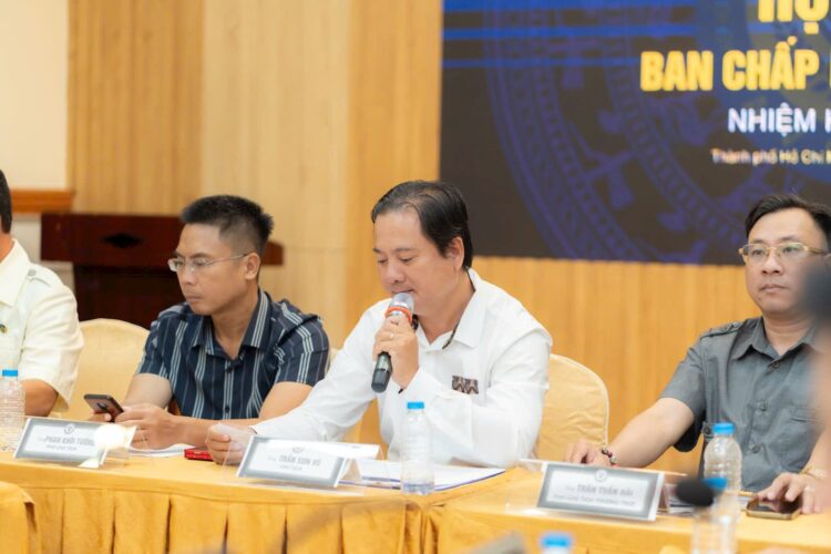 Tân trưởng ban Ban kiểm tra Hiệp hội Trương Hữu Phước đọc tờ trình về giám sát, kiểm tra trong thời gian nhiệm kỳ 2025 – 2030