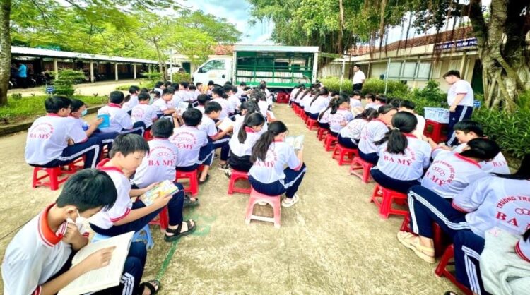 Xe thư viện lưu động đa phương tiện phục vụ học sinh tại trường THCS Ba Mỹ
